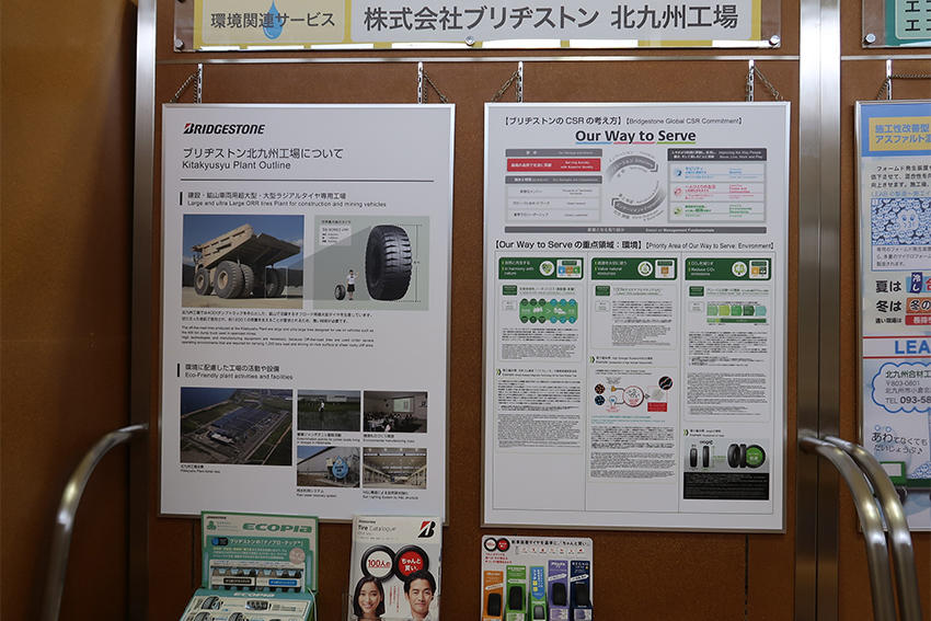 また、施設内には北九州市にあるいろいろな会社や団体の環境事業への取り組みを紹介するコーナーがあります。当社も北九州市にある工場での環境保全や持続可能な社会の実現に貢献する取り組みについてご紹介しています。