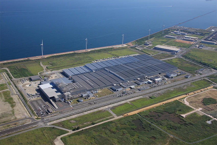 北九州工場はタイヤを製造するだけでなく、北九州市の一員として、環境に配慮した取り組みも行っています。工場の屋上に太陽電池を設置して発電された電力を工場内で使用したり、太陽の出る日中には照明を使わずに生産活動が出来るよう、自然光を取り入れる屋根を採用したりしています。