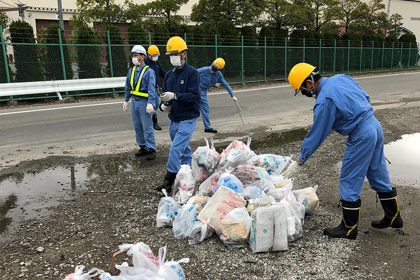 恒例行事である工場周辺のゴミ拾いボランティア活動も、一時は新型コロナウイルス感染拡大の影響で中止も検討されましたが、「気持ちが落ち込んでいるからこそ、社会貢献活動を」という思いから、3つの「密」の回避を徹底した上で実施しました。