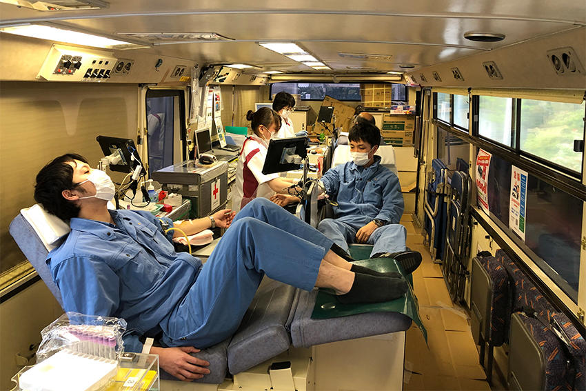 また、外出自粛により関東甲信越ブロック全体で血液が不足しているため、事業所に献血バスを受け入れ、総勢30人の従業員が就業時間中に献血を実施しました。