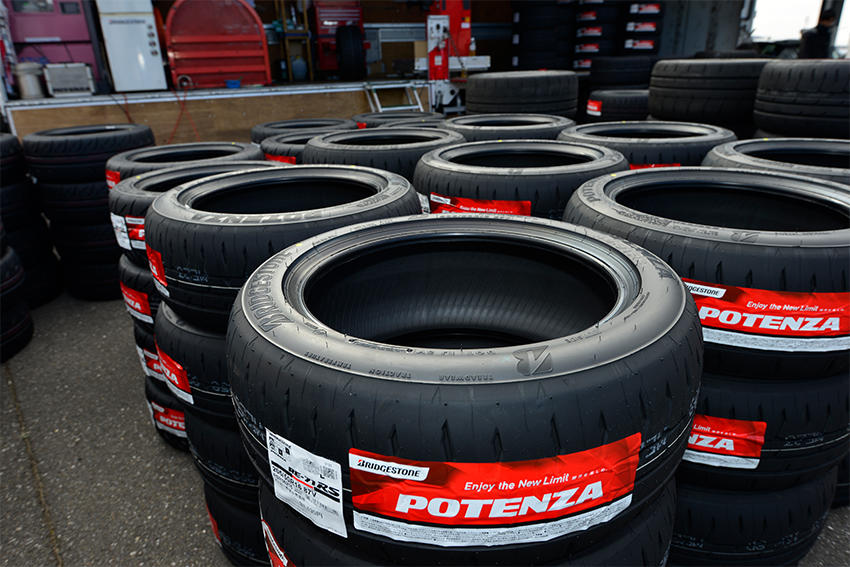 また、「POTENZA RE-71RS」はサーキット走行で重視されるドライ路面でのグリップ力とコントロール性を高めたタイヤなので、試験走行には足回りなどサーキット走行に適したチューニングを施した車両も必要です。また、テストは長時間の走行や夏場の高温下での走行など車両にとって過酷な環境下で実施することが多いため、車両を常にベストなコンディションにメンテナンスするメカニックの皆さんのサポートも欠かせません。