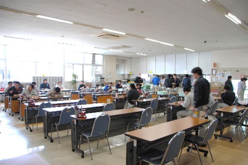会議や点呼・申し送りなど業務で人が集まる際には、常に一定の間隔を空けてマスクを着用します(マスクは工場から従業員に配布されます)。