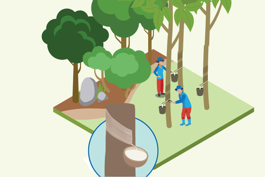 タイヤの原材料の大半を占める天然ゴム。天然ゴムを生み出すパラゴムノキはタイやインドネシアなどの東南アジアで大切に育てられています。