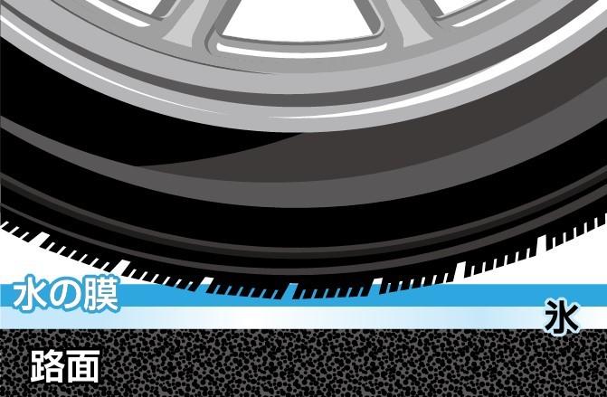 「では氷の路面ではどうか?というと、氷が解けて水の膜ができると、タイヤが路面と上手く接することができずに滑ってしまうんですね。なので、スタッドレスタイヤの発泡ゴムに期待する最も大事な機能は、氷の路面の上の水の膜を接地面から取り除く機能なんです。基本的に発泡ゴムは、氷の路面上の水を除去する機能を優先して進化しています。」