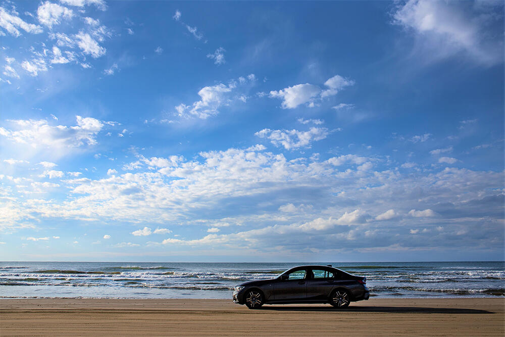 能登半島の石川県羽咋郡宝達志水町今浜から羽咋市千里浜町に至る約8kmの観光道路が「千里浜なぎさドライブウェイ」です。砂粒が非常に細かく、海水を吸って舗装路のように固くなることから、国内で唯一、一般のクルマで砂浜の波打ち際を走行できる道路として人気があります。特に砂浜を走る愛車から眺める夕景は素晴らしい思い出になるはずです。夏のレジャーシーズンは海水浴場としても人気があるエリアのため、砂浜に速度制限と駐車禁止の道路標識が設置されます。また波の高い日など天候により通行規制があるので注意しましょう。