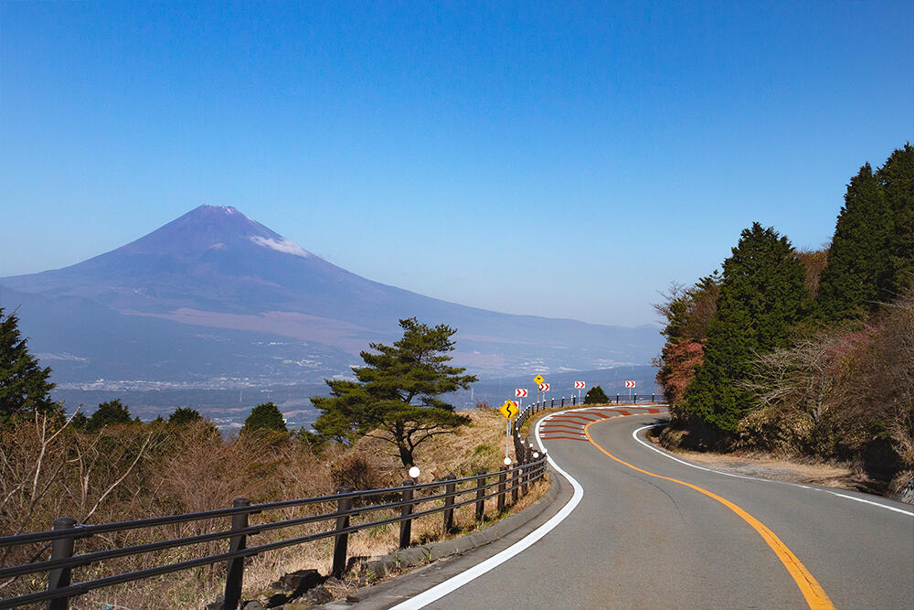「伊豆スカイライン」は熱海峠から天城高原に至る、伊豆半島を縦断する40.6kmの道です。1962年に供用開始したこのルートは、緩やかな中高速のコーナーが連続する走りやすいワインディングで、相模湾や駿河湾、そして富士山を眺められ、その景観の素晴らしさから伊豆半島の人気ドライブルートになっています。各所に展望パーキングスペースもあり、エリアごとの景色の変化を堪能しながらのんびり移動するのもオススメです。また夕景〜夜景もとても素晴らしく晴れた日は、あえて午後の時間を狙ってアクセスするのも良いでしょう。