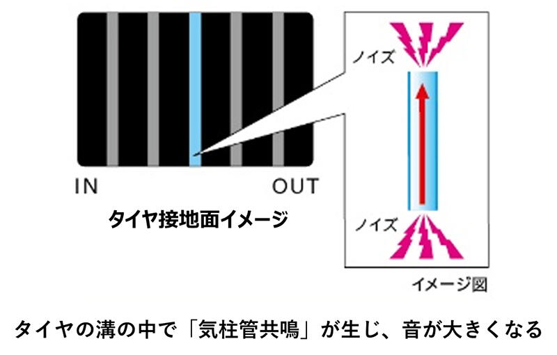 赤司「タイヤには雨の日でも安心して車が走ることができるように溝があります。この溝のおかげで接地面とタイヤの間の水を取り除くことができるのですが、太い溝で気柱管共鳴が起こることで管楽器のように音が発生します。これがタイヤの走行音の要因の一つとなります。」