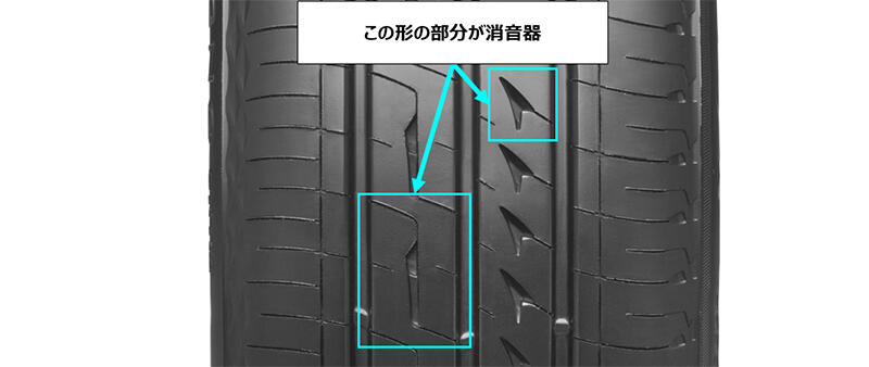 赤司「実際のタイヤ開発においては、走行音以外にもハンドリング性能や摩耗性能等、さまざまな性能を考慮する必要があり、消音器を数多く設置すればいいというわけではありません。できるだけ少ない数の消音器で走行音を低減でき、摩耗性能やハンドリング性能につながるパタンの剛性を維持するためにも、一つの消音器が二つの溝に対して効果を持つよう配置を工夫しました。消音効果と他の性能のバランスを考えながら、設計者と何度もシミュレーションや実験を重ねて形にしました。」