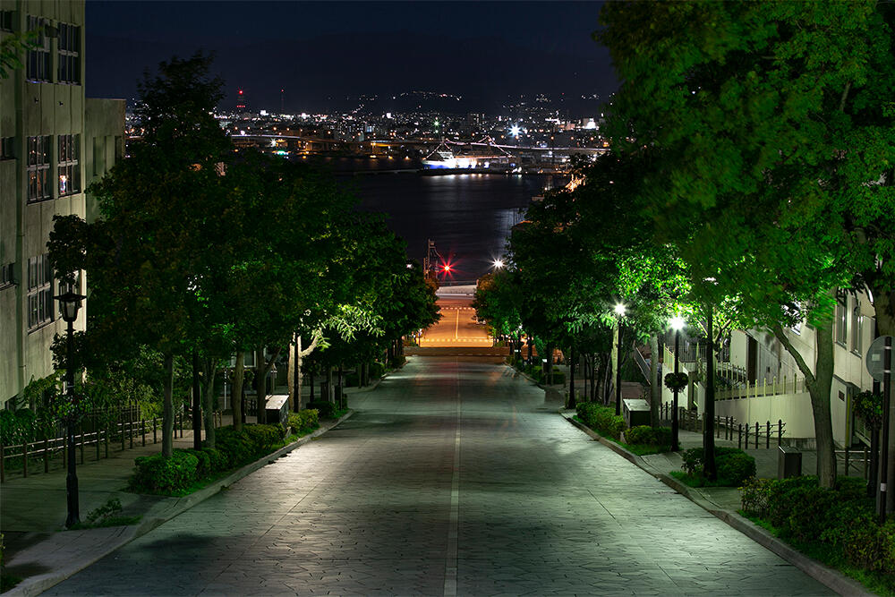 1854年に開港し横浜や長崎とともに世界とつながる海の玄関口として栄えてきた函館。古い教会や洋館、和洋折衷の住宅などが今なお残る西部地区を訪れると、この町が様々な国の文化によってつくられてきたことがよくわかります。そんな異国情緒溢れる函館の町に出かけたらぜひ足を運びたいのが八幡坂です。ここは函館山と並ぶビュースポットとして知られ、坂の上からはまっすぐ伸びる石畳の道と美しい函館港を一望できます。夜景の名所としても知られ、日が沈むと多くの人がドライブがてらこの地を訪れ、函館の夜景を楽しんでいます。