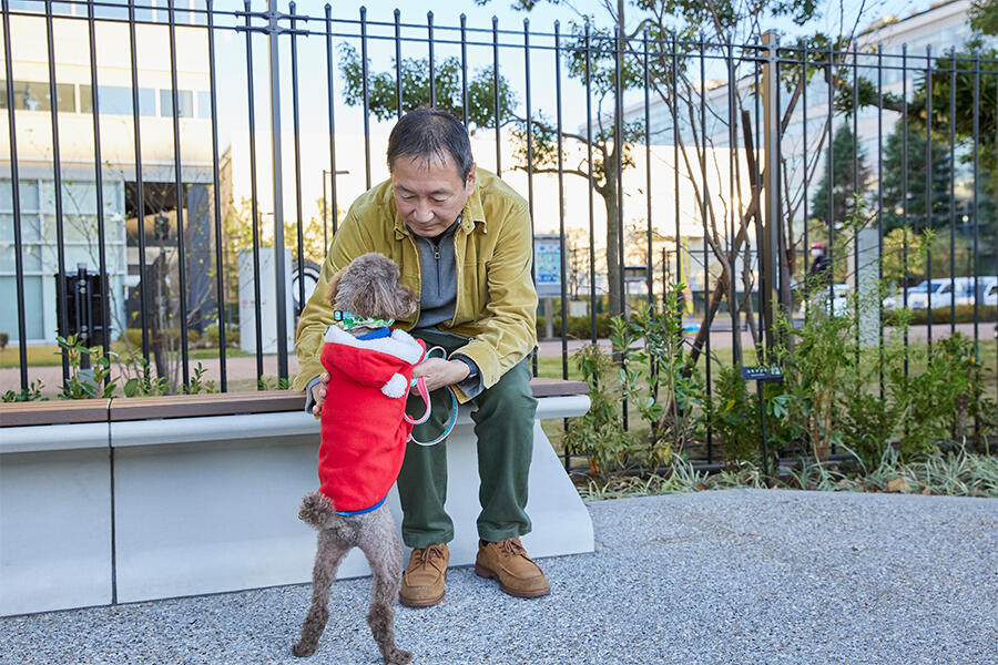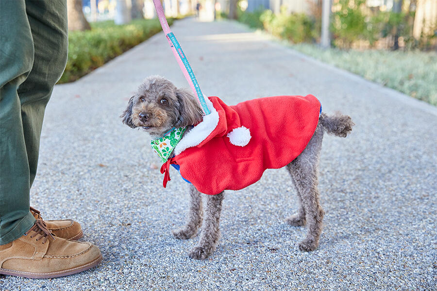 さてこの日は、川本家の愛犬のBuddy(バディー)とBridgestone Parkwayをお散歩してきました。クリスマスが近いのでサンタさん仕様です。見てください、この愛くるしい姿。可愛いくてしょうがないでしょう?
