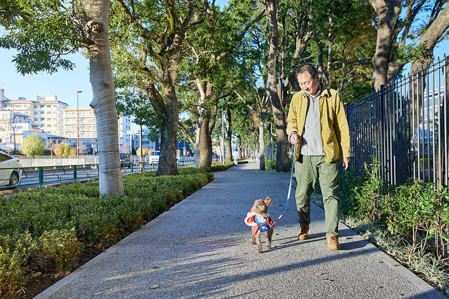 Buddyと並んで歩いてみました。道幅が広いので、のびのびお散歩ができてBuddyも嬉しそうです。そんなBuddyを見ていたら、私も思わず笑みがこぼれてしまいました。