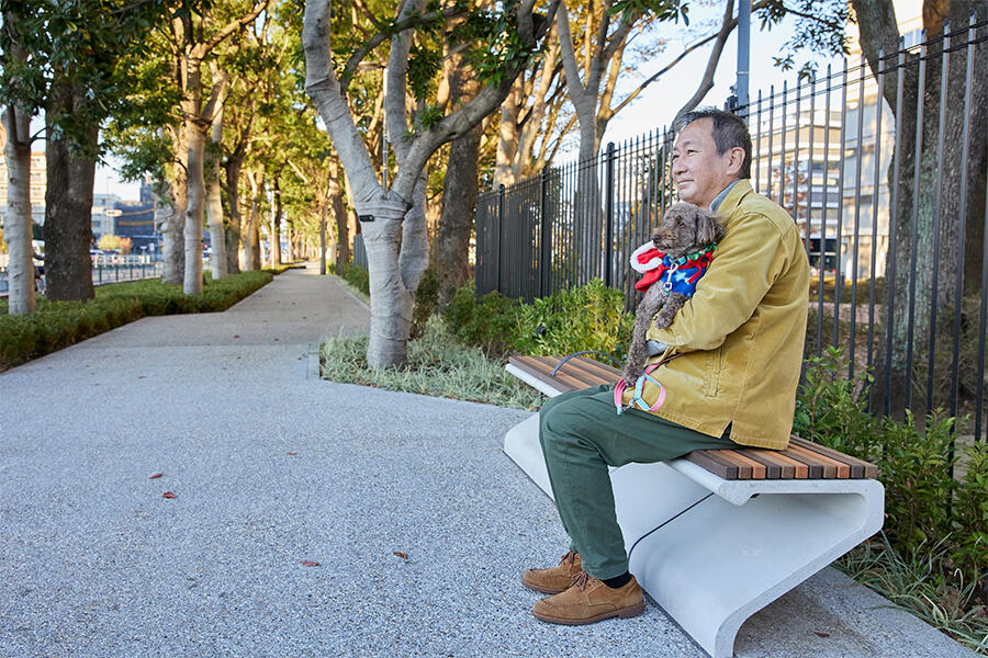 広い道幅で、既存の樹木も活かした緑が生い茂る潤いのある空間、休憩できるベンチもある公園のような歩道という想いを込め、「Bridgestone Parkway」と名付けました。