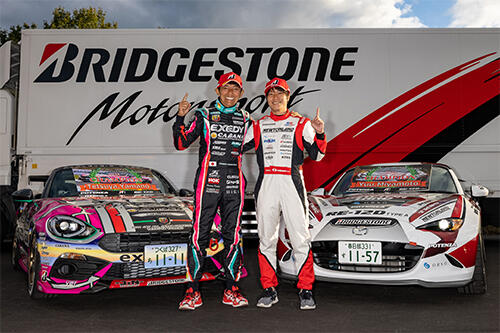 今シーズンの全日本ジムカーナ選手権では、JG7クラス(2006年以降にJAF登録された1600cc超の2WD車で、改造範囲が最も狭い)でブリヂストンのタイヤを履く山野 哲也選手が、JG6クラス(2012年以降にJAF登録された1600cc超2000cc以下のRWD車で、改造範囲が最も狭い)ではユウ選手がシリーズチャンピオンを獲得しました。