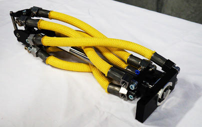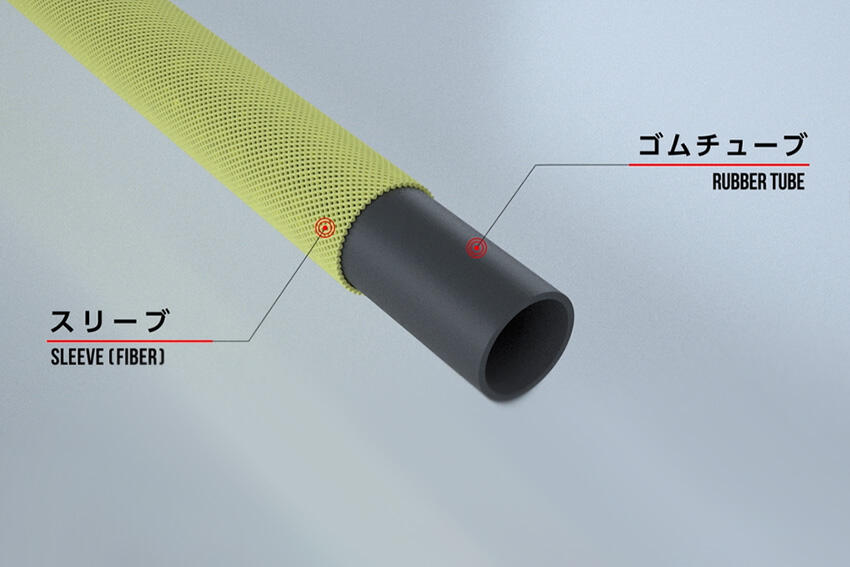この「いい感じ」にモノをつかむソフトロボットハンドの秘密は、ブリヂストンのゴム人工筋肉「ラバーアクチュエーター」。ラバーアクチュエーターとは、ブリヂストンがタイヤや油圧ホースの開発で培った技術を応用したゴムチューブと、それを囲む高強度繊維のスリーブから構成されているものです。