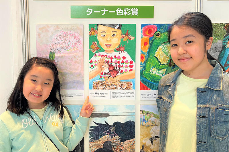 伊神:「どの作品にもお子さん一人ひとりの自然や環境へのメッセージが詰まっており、豊かな表現力と感受性に圧倒されます。こちらの作品は、「ターナー色彩賞」に選出された野地さんの作品「わたしの小さなともだち」。ご本人が自宅で数十匹飼育するカブトムシとのほのぼのとした日常を描いた作品を応募してくれました。笑みを浮かべ、右手を添えて優しくカブトムシに触れる様子からは、生き物を大切に育てる野地さんの日常がうかがえます。