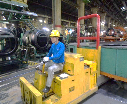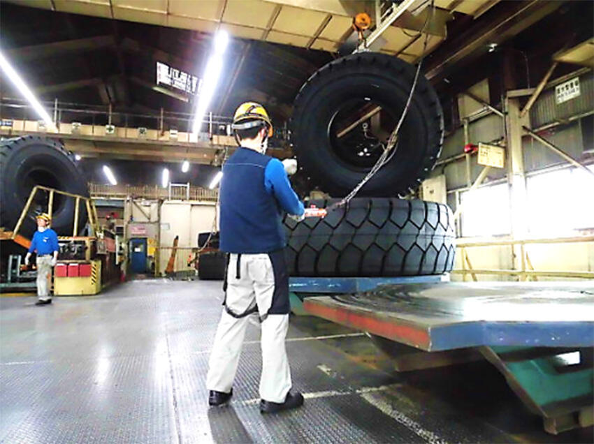 鉱山を走り回るダンプトラック用のタイヤを製造している下関工場。