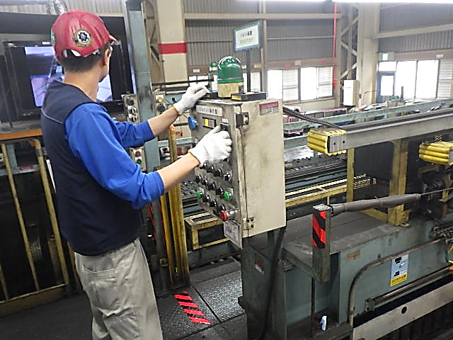 トリート(金属線を均等に並べて、両面をゴムでコーティングしたもの)は、それぞれ厚みやコシが異なります。その特徴や癖を全て把握し、瞬時に最良な条件で位置合わせを行い、1mmのズレもなくジョイント操作を行う匠。その名は、林 典昭社員。