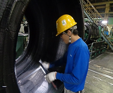 タイヤの骨格に作り上げる、下関工場の骨格ともいえる若きスーパー匠です!