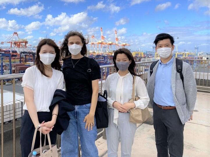 ブリヂストン従業員は、実際に現場へ行って自分の目で確認する「現物現場」を大切な心構えの1つとしています。海外向け工業用ホース事業の計画開発、貿易業務を担う部署に配属されたエリザベータさんも「現物現場」を実践すべく、港湾を訪れ、物流現場の最前線を見学しました。
