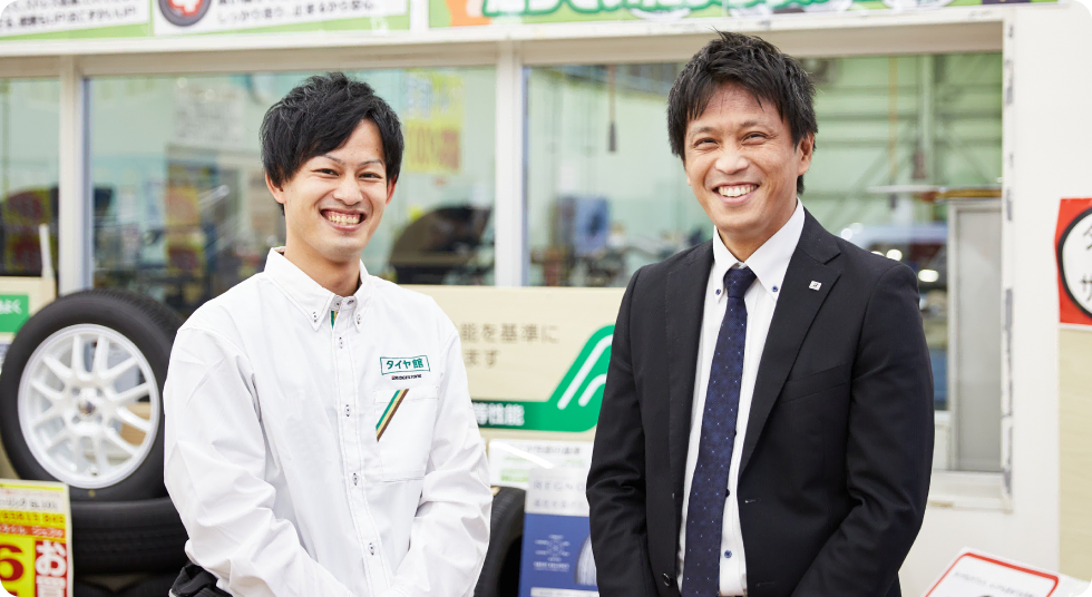 全国にチェーン展開する「タイヤ館」「コクピット」のスタッフとして、来店されたお客様に最適なタイヤや自動車用品を提案する接客と、ピットで行うタイヤの点検・メンテナンスが主な仕事です。店舗のメンバーがチームワークを発揮して、お客様の豊かなカーライフに貢献しています。