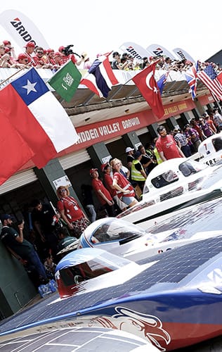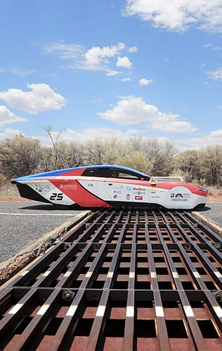 約5日間をかけてオーストラリア大陸約3,000kmを縦断する世界最高峰のソーラーカーレースです。