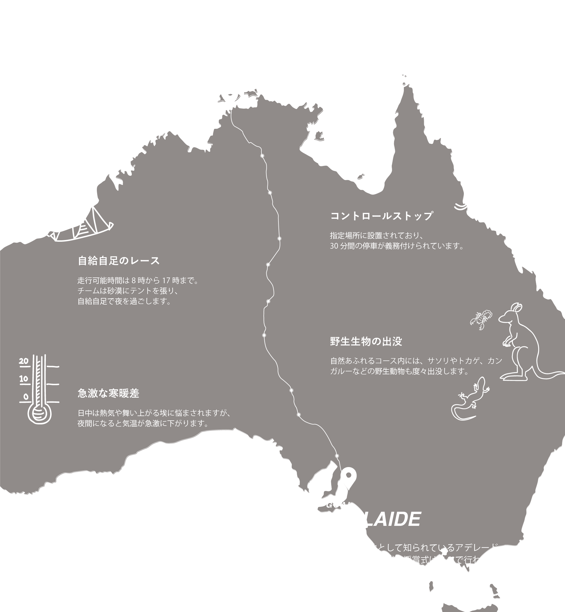 オーストラリア大陸約3,000㎞の横断に挑戦します。