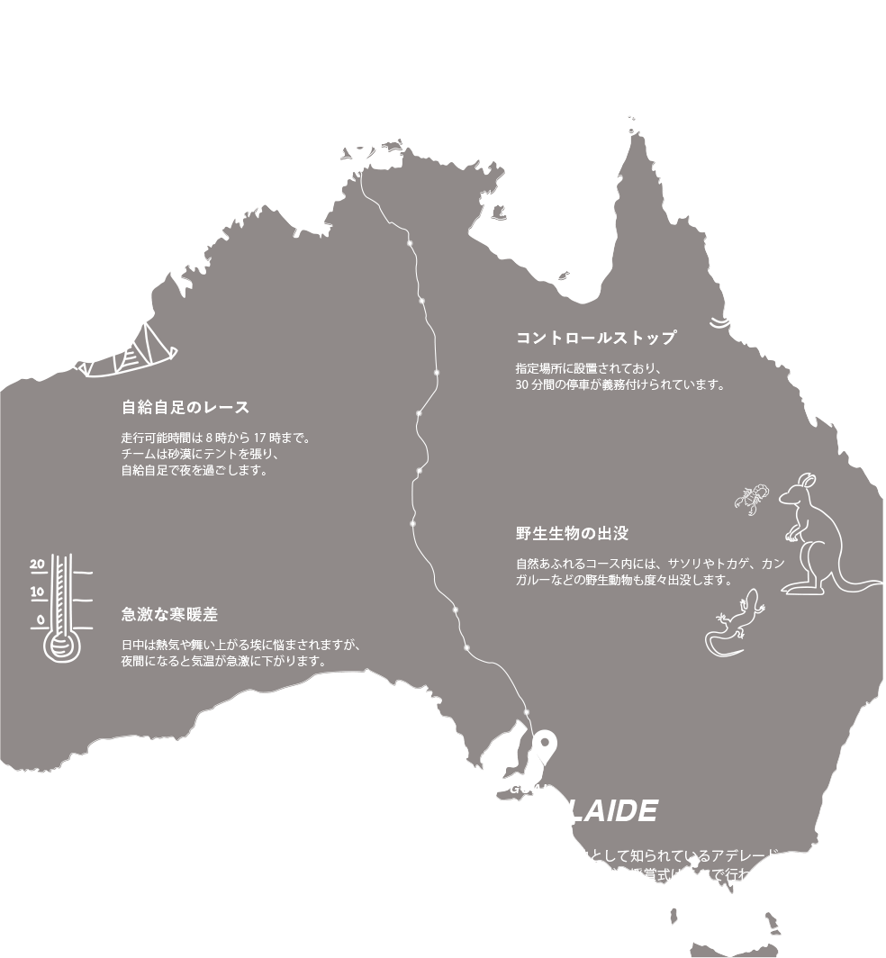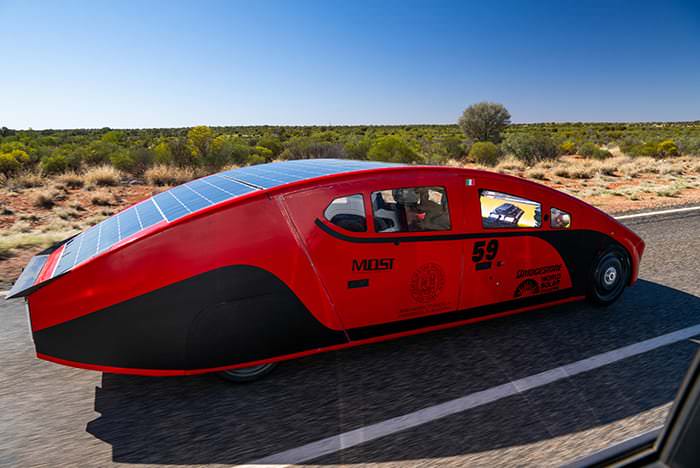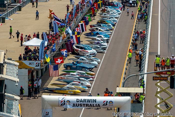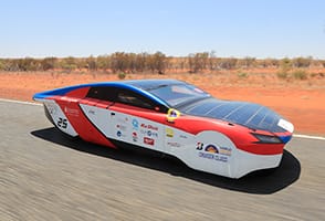 Bridgestone World Solar Challenge (ブリヂストン・ワールドソーラーチャレンジ)は太陽光を動力源として、約5日間をかけてオーストラリア北部のダーウィンから南部のアデレードまでの約3,000kmを走破する世界最高峰のソーラーカーレースです。世界一速いソーラーカーを決めるチャレンジャークラス、速さと実用性を競うクルーザークラス、そして順位よりも大会を楽しむエクスプローラークラスの3クラスが設定されています。世界各国から集まった大学生を含む40ほどのチームが5~6日間をかけて広大なオーストラリア大陸を走り抜けます。