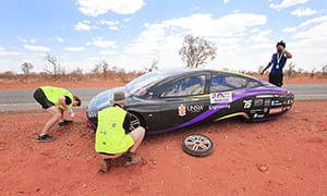 大会のルール上、各チームは8:00~17:00までの間しか走行することができません。ちょうど17:00に快適なモーテルにたどり着くことはまずなく、参加者は砂漠のどこであろうとテントを張り、自給自足で過ごします。南半球の億千の星の下でのキャンプは、忘れられない体験となるでしょう。自分たちのソーラーカーの修理とメンテナンスといった自足能力も、この挑戦に欠かせない要素です。