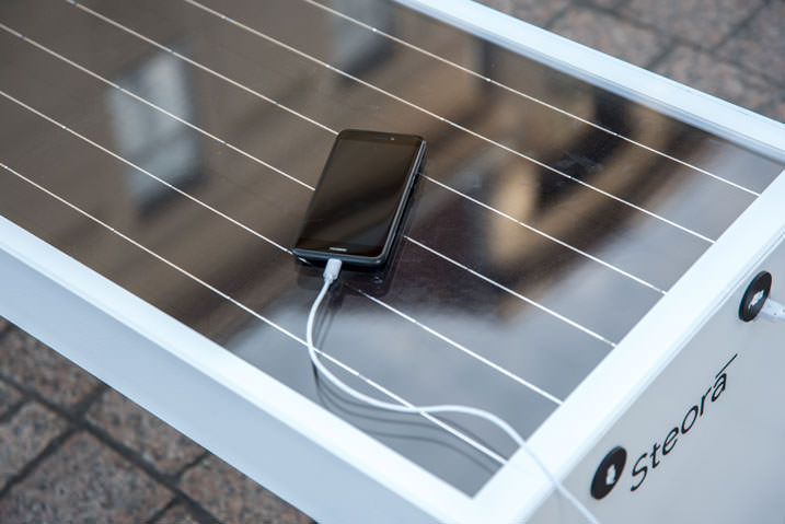 充電デバイス、Wi-Fi、広告ディスプレイに防犯カメラまで! ソーラーパワーベンチ「Steora」