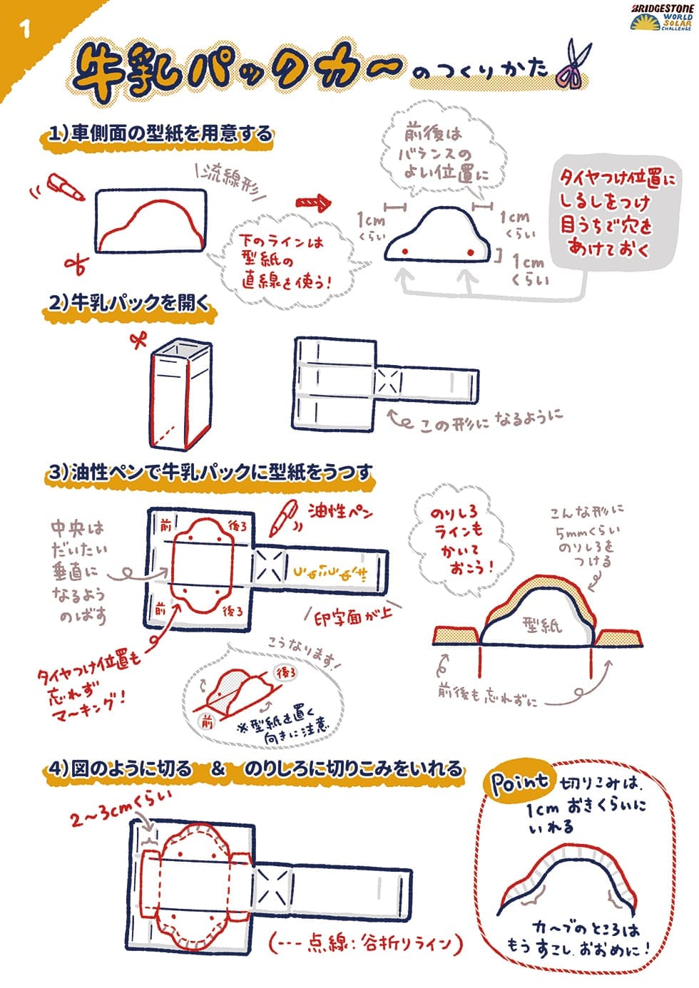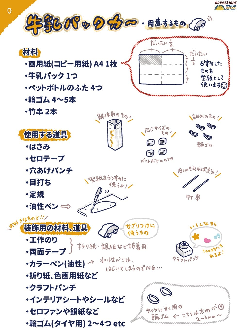 今回は、同イベントで好評を博した人気DIY作家 pikaさん監修による、「オリジナル牛乳パックソーラーカー」の作り方をご紹介。リサイクル素材を活用して、オリジナルソーラーカーを親子で作ってみましょう!