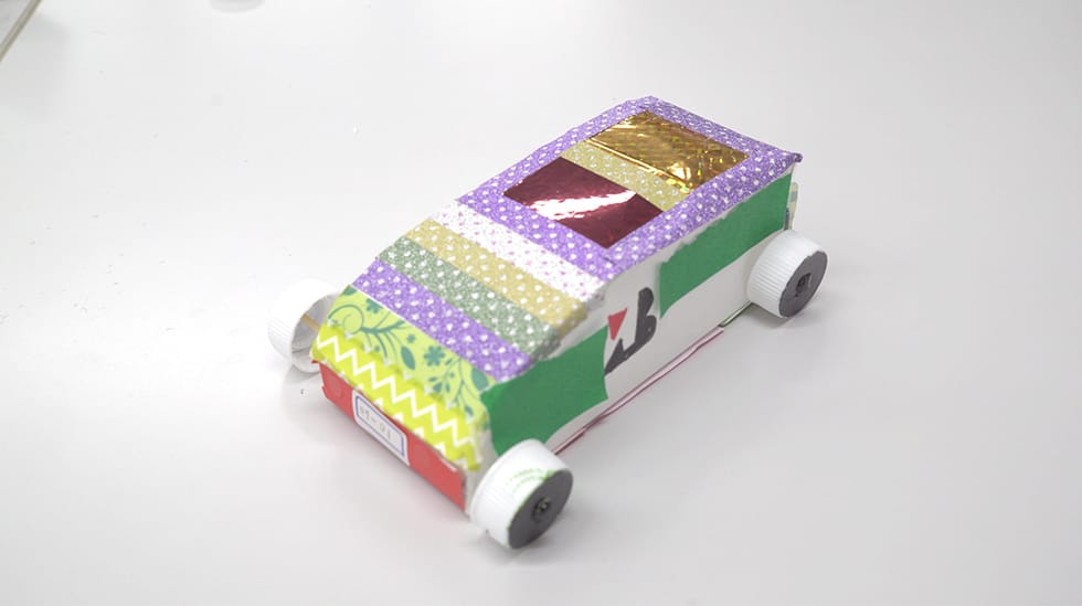 最後はお好みのデコレーションで、世界に一つだけのオリジナル牛乳パックソーラーカーに!