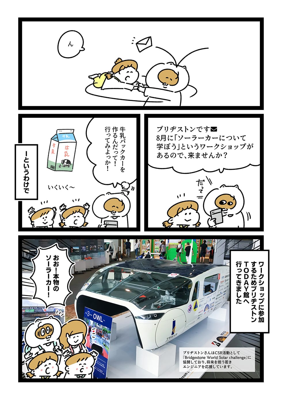 理科と工作が好きというゆうたくんは、一体どのようなオリジナル牛乳パックソーラーカーを創り上げたのか。その様子を漫画でご覧ください。