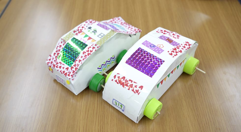 最後はお好みのデコレーションで、世界に一つだけのオリジナル牛乳パックソーラーカーに!