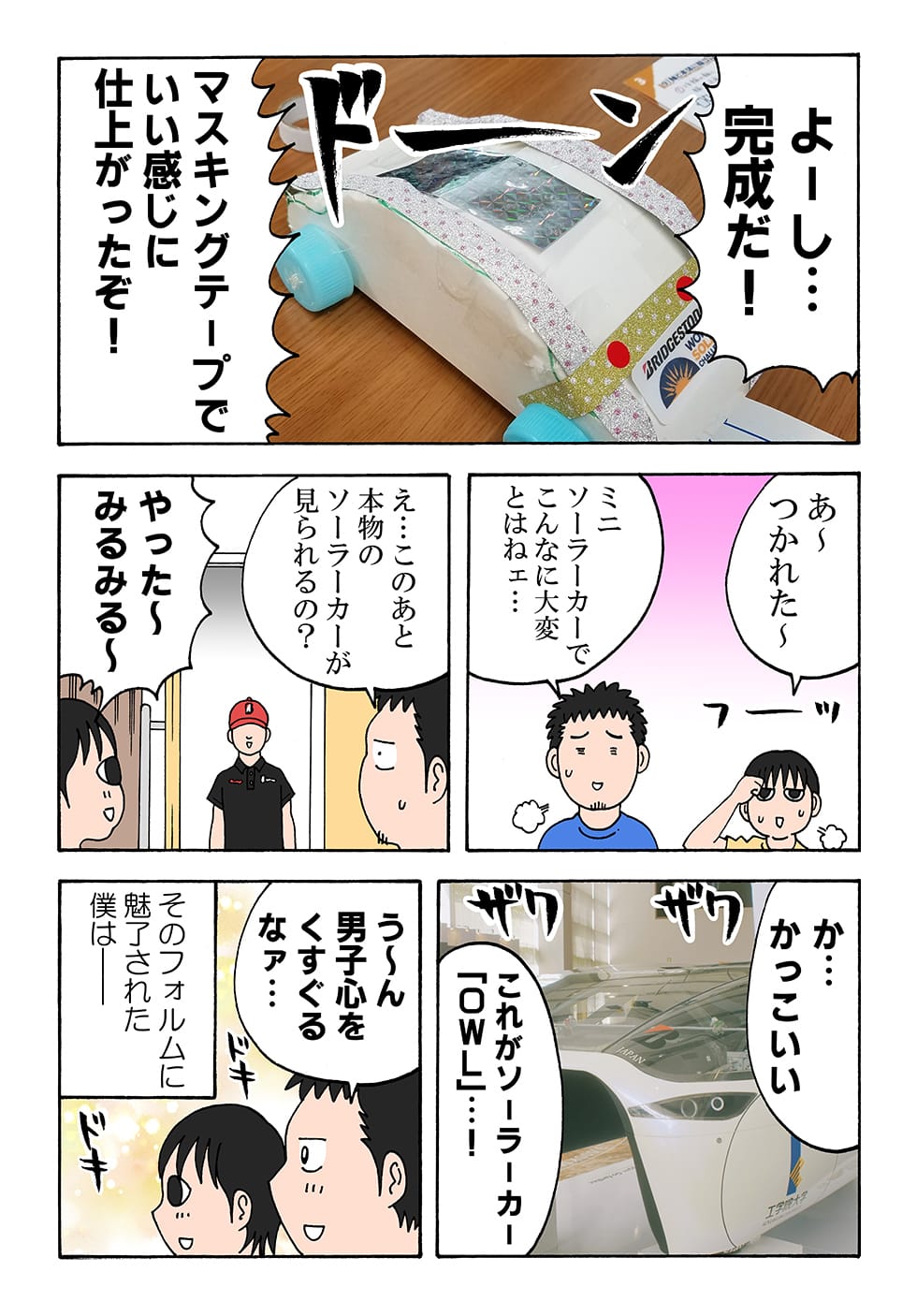 理科と工作が好きというゆうたくんは、一体どのようなオリジナル牛乳パックソーラーカーを創り上げたのか。その様子を漫画でご覧ください。