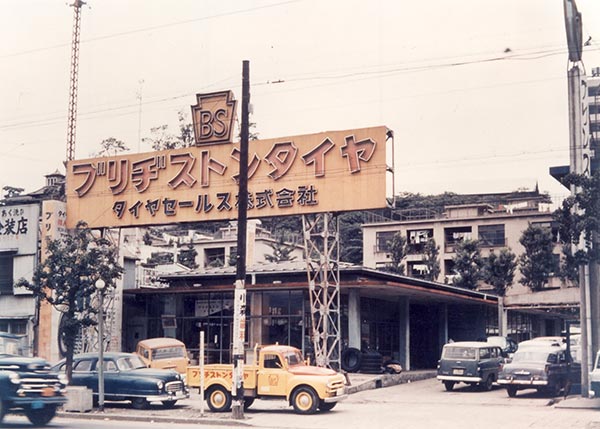 1950年代後半、タイヤの量販を担う中核はタイヤ専業店でした。当社は、専業店の小売店意識を盛り上げ、お客様が入りやすい店舗作りを推進することが重要と考え、1957年から翌年にかけて、他社に先駆けて専業店の店頭に塩化ビニール製の統一デザインの看板を設置しています。これは販売促進のためだけではなく、専業店と当社の結びつきの強化にも大いに役立ちました。