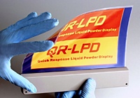 2006年5月には、ディスプレイのパネル基板をガラスからプラスチックに変えたことにより、QR-LPDの高視認性、広視野角、メモリー性、高応答性などの特徴を維持したまま、フレキシブル化、超薄型化、超軽量化が可能となり、「世界最大級で最も薄い、カラー粒子を用いたディスプレイのフレキシブル化」に成功しました。