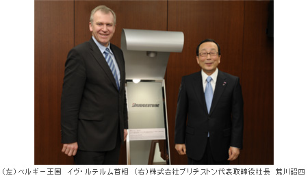 ルテルム首相は4月7日から10日まで在東京ベルギー大使館の新築落成式などにご出席のため来日されており、同国と当社の関係が深いことから今回のご訪問が実現しました。当社欧州統括子会社であるブリヂストン ヨーロッパ エヌヴイ/エスエーは、ベルギーの首都ブリュッセルに本社を置いております。また、2009年10月7日には、荒川は同国で最高位の勲章であるレオポルド勲章コマンドール章(Commander of the Order of Leopold)を、ベルギー政府より授与されています。