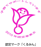 株式会社ブリヂストン(社長 荒川詔四)は、次世代育成支援対策推進法に基づき、子育て支援のための取り組みに関し、一定の基準を満たした企業として、厚生労働省・東京労働局から2010年5月に認定を受けました。認定された企業は次世代認定マーク(愛称「くるみん」)を使用することができます。