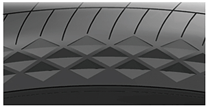 ブロック表面を3次元曲面にして、路面とブロックの接地により発生するノイズを抑制します。