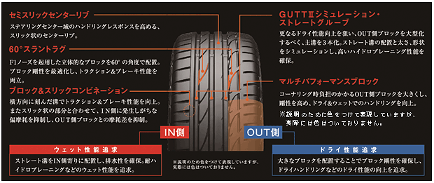 (2)2010年に発売し、多くのお客様にご好評いただいております「POTENZA S001」と同様、高次元のドライ・ウェットパフォーマンスを発揮します。尚、「POTENZA S001」は新車装着用タイヤとしても「フェラーリ458 Italia」や「アストンマーティンRapide」、「LEXUS LFA」に採用されています。
