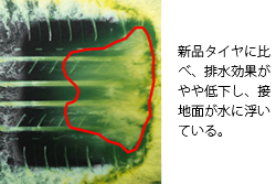 溝深さ | 路面とタイヤの接地面 | 接地面の様子 |