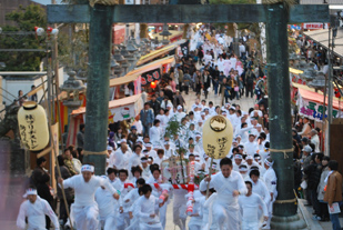 株式会社ブリヂストン防府工場(工場長 多胡和徳)は、西日本屈指の荒祭りとして知られる防府天満宮の御神幸祭(裸坊祭)に使用される「御網代(おあじろ)」台車の車輪に、当社製ゴムクローラを装着し、11月11日(金)に奉納致しました。これは、「御網代」台車の鉄製の車輪が防府市商店街のカラータイルを傷つけることを防ぐために、防府天満宮からのご相談を受け実施したものです。