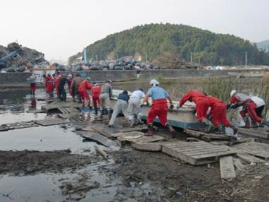 当社グループでは、2011年4月よりボランティアチームを結成し、11月末現在で16チーム498名のグループ従業員、及び従業員の家族が被災地で復興支援のお手伝いを行ってきました。被災地の状況やニーズは徐々に変化しており、従来の家屋や側溝の泥出し、草刈、がれき撤去等のお手伝いに加え、漁港での産業復興支援や自然環境再生活動等、新たなボランティアニーズも発生し、依然として復興に向けての力になれることがあることから、継続してボランティアチームを派遣することとしました。