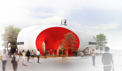 「The Future Seeds」は、球形のゴムの木の種子をモチーフとしたデザインのパビリオンです。ゴムの木の種子は、ブリヂストングループの商品の原点を象徴するものであり、また世界に優れた創造性と革新を与える知的な種を表現しています。