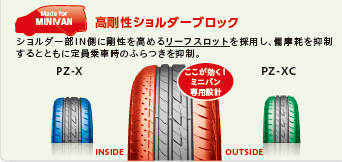 株式会社ブリヂストン(社長 荒川詔四)は、低燃費タイヤ「ECOPIA」ブランド※1 の新商品としてセダン・クーペ専用の「ECOPIA PZ-X」、軽・コンパクトカー専用の「ECOPIA PZ-XC」、ミニバン専用の「ECOPIA PRV」の3商品を2012年2月1日から発売致します。発売サイズは、「ECOPIA PZ-X」が43サイズ、「ECOPIA PZ-XC」が26サイズ、「ECOPIA PRV」が26サイズの合計95サイズで、価格は全てオープン価格です。