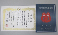 この制度は、磐田市が地域の消防防災力の充実強化等の一層の推進を図ることを目的に、磐田市消防団に積極的に協力している事業所に対して「磐田市消防団協力事業所表示証」を交付するものです。磐田工場では、勤務の傍ら12名の従業員が消防団員として地域の防災活動に従事していることが評価され、今回の認定となりました。