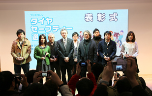 交通安全やタイヤの日常点検の推進につながる動画や活動アイデアを皆様から募集し、動画部門48作品、プランニング部門40作品の応募を頂きました。公平な審査とともに、動画部門の作品に関しては皆様からWEB投票(6,135票)を頂き、最優秀作品を決定し、第42回東京モーターショー2011の当社ブースで表彰式を行いました。尚、最優秀作品及び優秀作品は、当社ホームページ(http://tiresafety-contest.jp/)