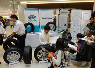 一般社団法人日本自動車連盟(JAF)と共催で、タイヤの日常点検方法やシートベルト、チャイルドシートの重要性を、多くのお客様が集まる商業施設2カ所でご紹介しました。実施日と場所は以下の通りです。