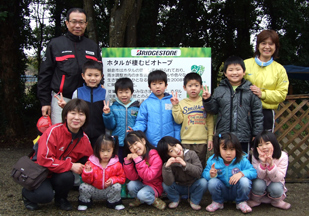 保育所の子どもたちと一緒に(左上が山﨑工場長)