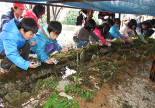 株式会社ブリヂストン甘木工場(工場長 山﨑憲二)は、3月5日(月)に近隣保育所の子どもたちと一緒に、工場内にあるビオトープ(※)へ、地域で育てた約100匹のホタル幼虫の放流を行いました。